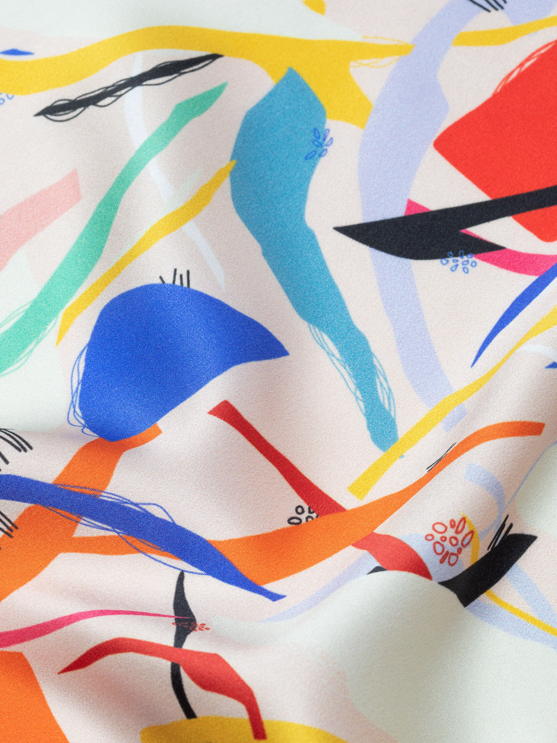 På 100% Real Silk Satin kan du förvänta dig starka färger och intrikata detaljer. Tyget är tryckt med reaktiva bläck. Tyget har en delvis genomskinlig färg på baksidan.