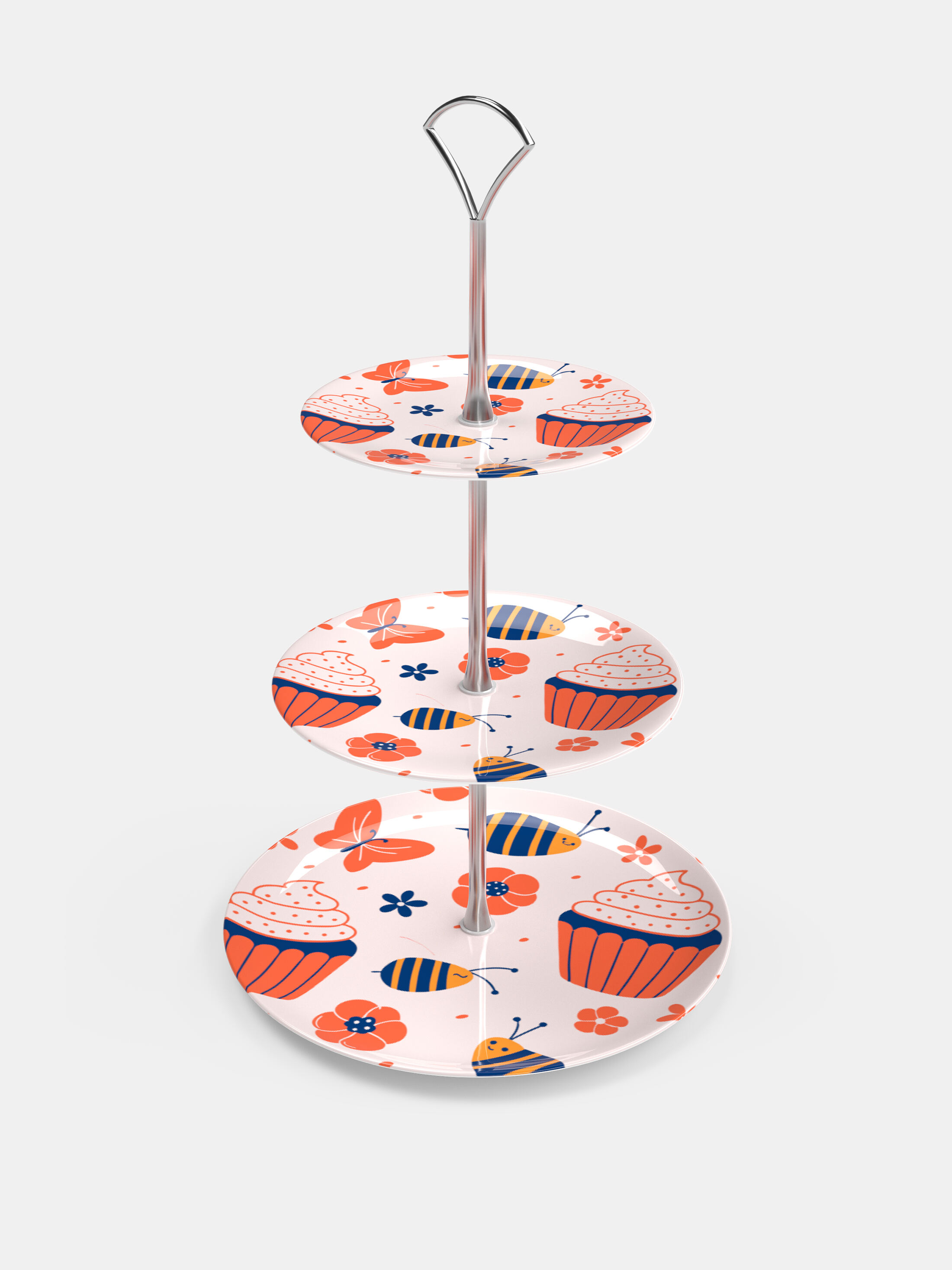 Dina tebjudningar och fikastunder kommer aldrig bli desamma. Servera dina bakverk och fikabröd på ett fint uppläggningsfat som du har designat själv och vi trycker för hand. När du skapar uppläggningsfatet så kan du välja att designa varje nivå på olika sätt. Varje nivå har olika storlekar, som går från liten till stor med en tålig tjocklek på 3mm. Din design blir skarp, tydlig och helt perfekt när den trycks på det starka och hygieniska benporslin. Färgskalan är levande, stark och detaljerna i din design kommer att återges med en precis skärpa och klarhet. De silverfärgade fixturerna är tåliga och säkra samtidigt som de är dekorativa och ger ditt uppläggningsfat en elegant och tidlös finish.