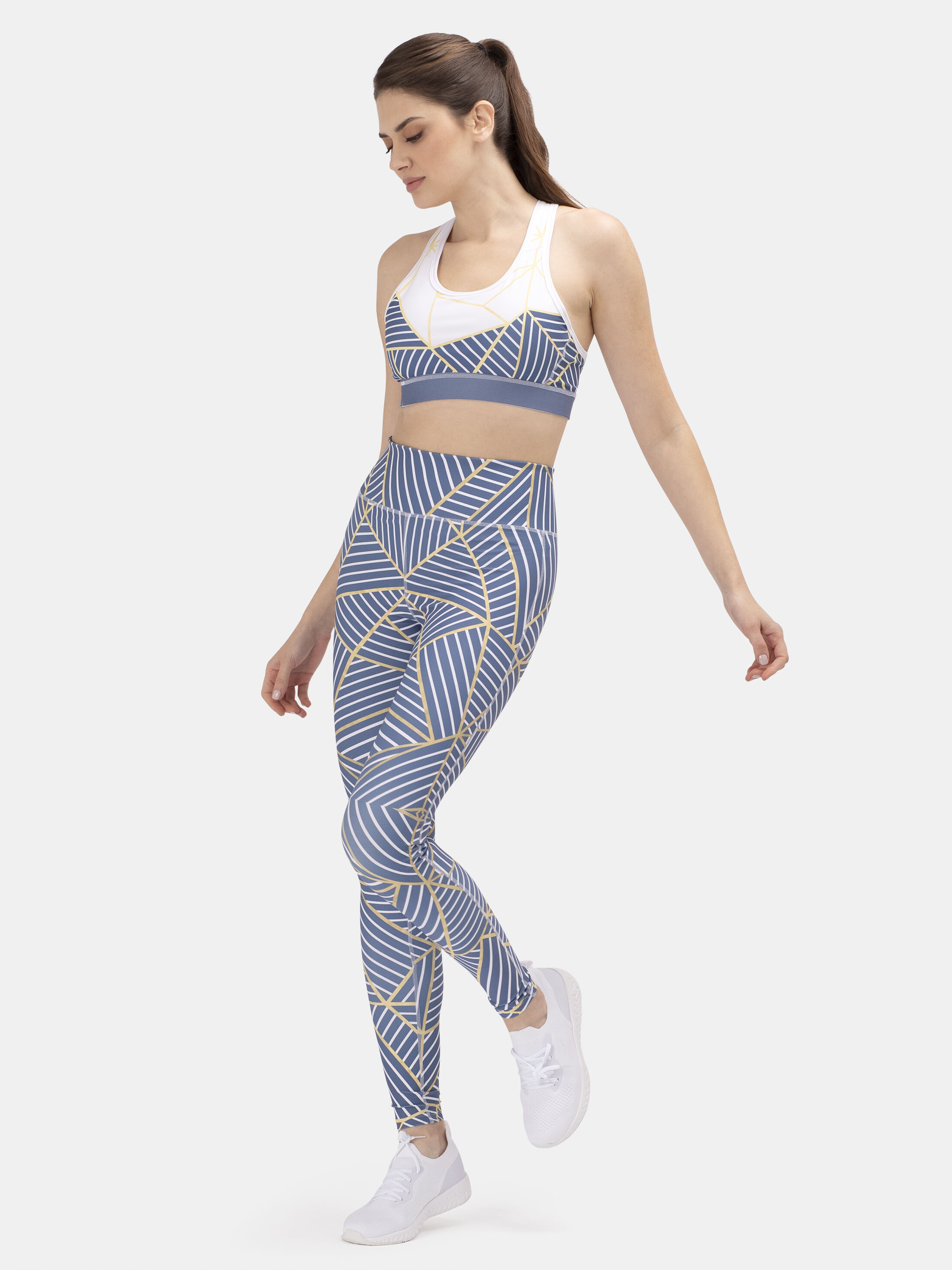 Dina egendesignade gymleggings handtillverkas genom hela processen. Vi trycker tyget med en färgsublimeringsmetod, vilken binder bläcket djupt i tyget så att det tål både svett och tvätt. Sedan klipper vi ut och syr ihop varje del för att skapa exakt det plagg du sett framför dig.