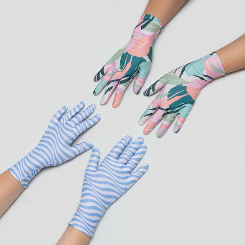 Snygga skyddshandskar för shoppingturen eller kollektivtrafiken. Designa ett par egendesignade handskar för dam och herr och skydda händerna från smuts och damm när du handlar. Kan maskintvättas och är ett utmärkt alternativ till engångshandskar av plast, finns i fem storlekar som passar barn, kvinnor och män. Handskarna passar på både höger och vänster hand så du kan släppa loss kreativiteten helt. Det mjuka lycramaterialet gör dem enkla att vika ihop och stoppa i fickan eller handväskan. Moderiktiga och personliga handskar för män och kvinnor som tillverkas på beställning med din design. Du kan designa fram- och baksidan separat.
