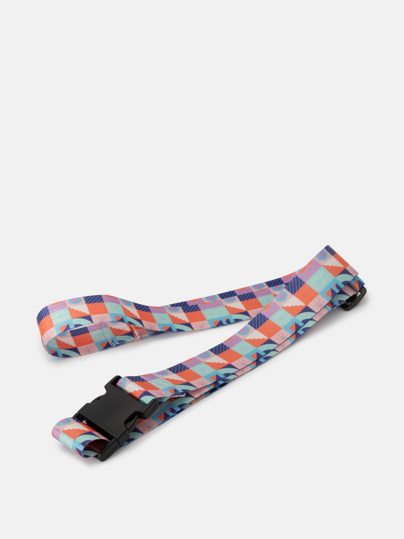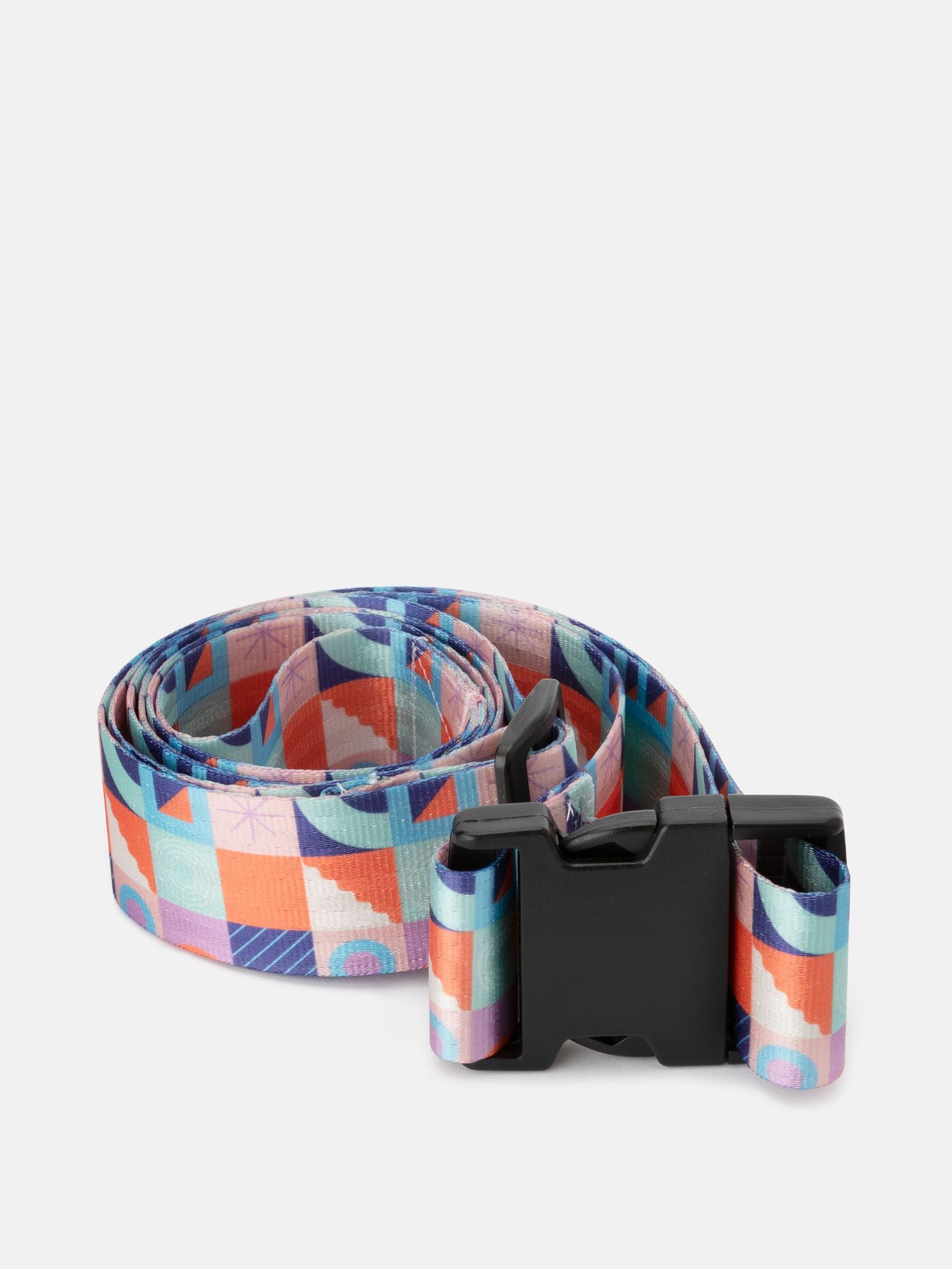 Vi föreslår att du väljer livfulla mönster och djärva tryck på de personliga resväskeremmarna för att säkerställa att din väska är så distinkt som möjligt. Ju större motivet är, desto lättare blir det att se, så undvik bilder med små detaljer eftersom dessa inte kommer att synas tydligt mot det texturerade, korniga vävbandet. För textbaserade designer, skriv ut ett namn eller ett ord på de personliga resväskeremmarna, så att det kan identifieras på långt håll.