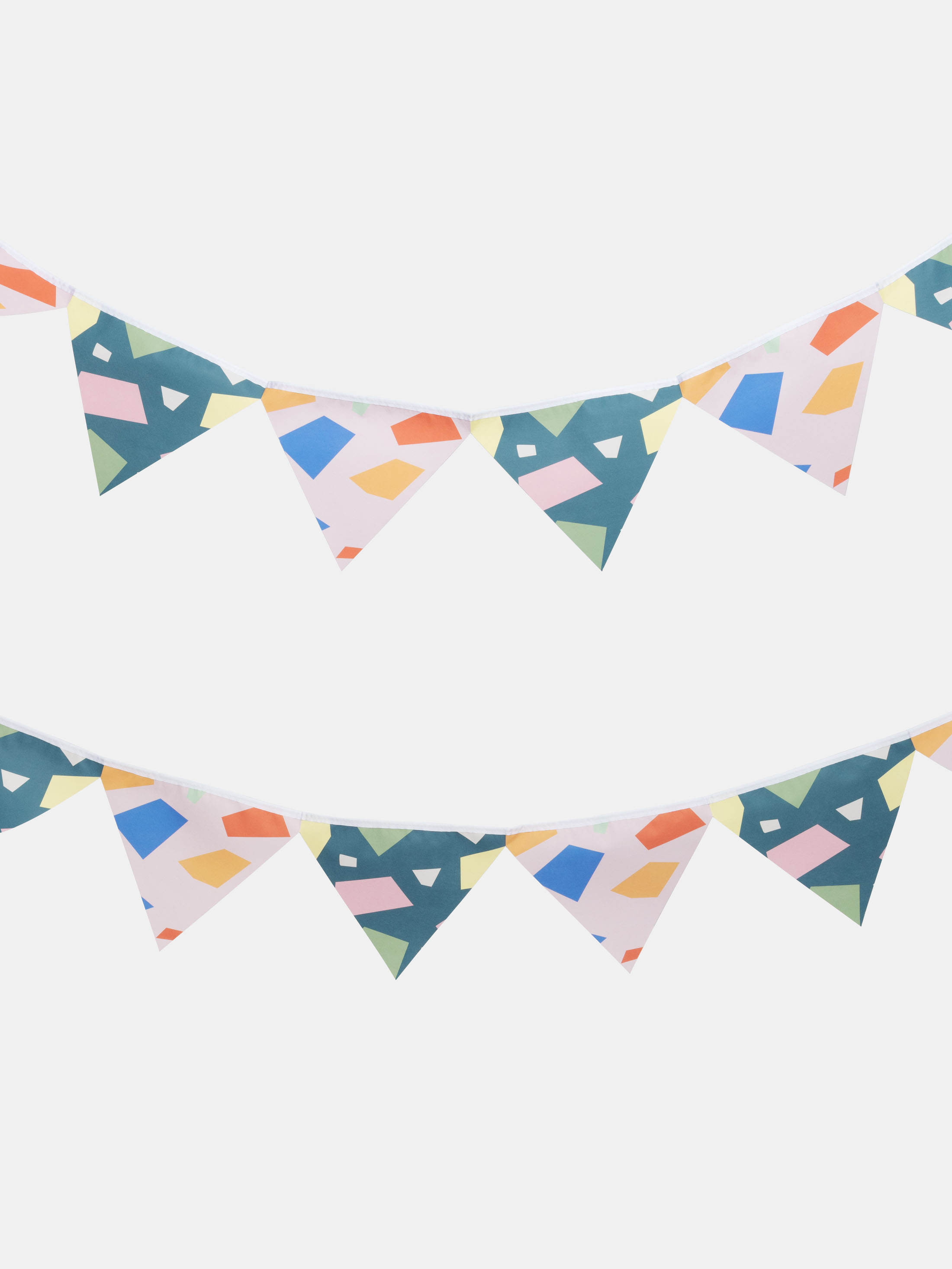Skapa din egen flaggirlang som du designar själv med ditt eget tryck, som kan lyfta dina fester och event till nya höjder. Tryck dem med din originalkonst, bilder, illustrationer eller texter. Den här traditionella festdekorationen får en modern twist som kommer att imponera på dina gäster. Du får en flaggirlang på totalt 10m (i två 5m girlanger) och du kan designa varje flagga individuellt, så att du får total kreativ frihet. Den här dekorationen är inte bara till för fester inomhus, utan den vädertåliga girlangen kan också användas utomhus för gatufester och trädgårdssammankomster. Den är inte helt vattentålig, men kan stå emot våta förhållanden utan att trycket förvrängs eller skadas.