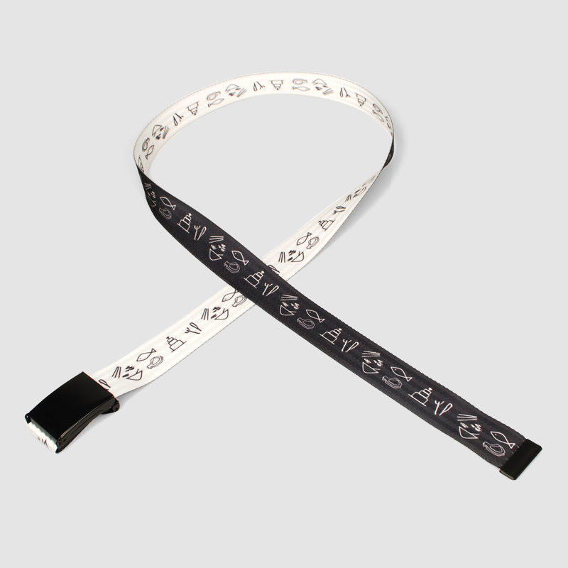 Designa ett skärp som är både moderiktigt och praktiskt. Låt dina foton, mönster eller illustrationer komma till liv i tryck på ett personligt skärp. Det tillverkas av en slitstark, vävd och polyesterbaserad textil som tål daglig användning. Beroende på vad som passar din design bäst så kan du välja mellan svart eller silvrig yta på metallspännet.
