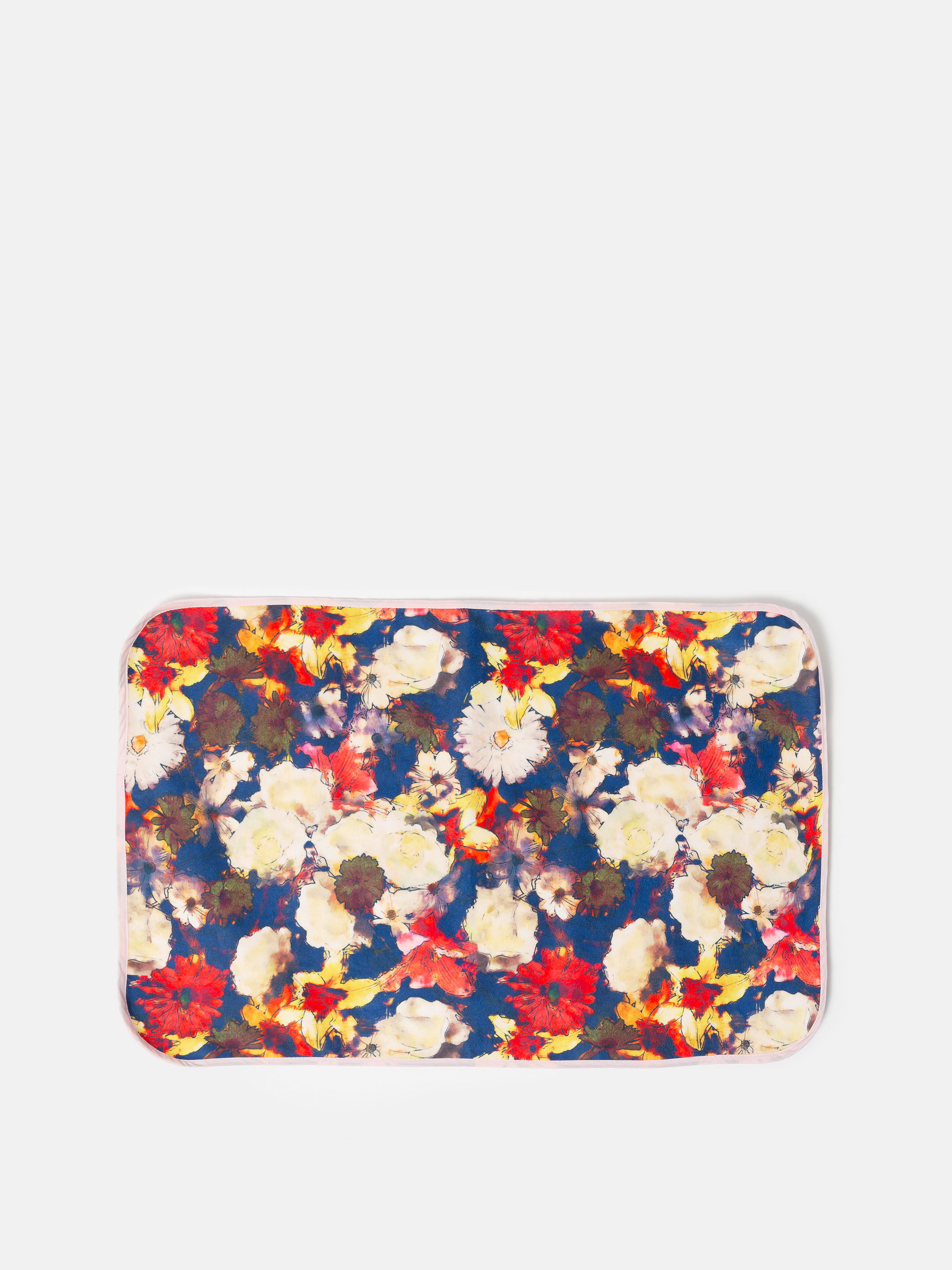 Din skötbädd tillverkas omsorgsfullt för hand av våra duktiga skräddare och är ett utmärkt exempel på skräddarsydd expertis. Din design trycks kant-i-kant på polarfleecen, som också är flamsäker och vattenavstötande. Vi använder en speciell tryckteknik som gör att bläcket sjunker djupt in i tygets fiber, vilket skapar ett långvarigt tryck som inte kommer att flagna, repas eller blekna i första laget. Trycket är detaljrikt med livliga färger, vilket gör det perfekt om du vill använda en design med ett komplext mönster. Tyget skärs till för hand och sys ihop med den vattentäta baksidan som är antingen blå, rosa eller beige. Ett sidenband i samma färg som baksidan sys på runt kanterna, vilket ger en fin detalj. Slutprodukten är helt felfri och kommer att se supersnygg ut med resten av dina bebisaccessoarer.