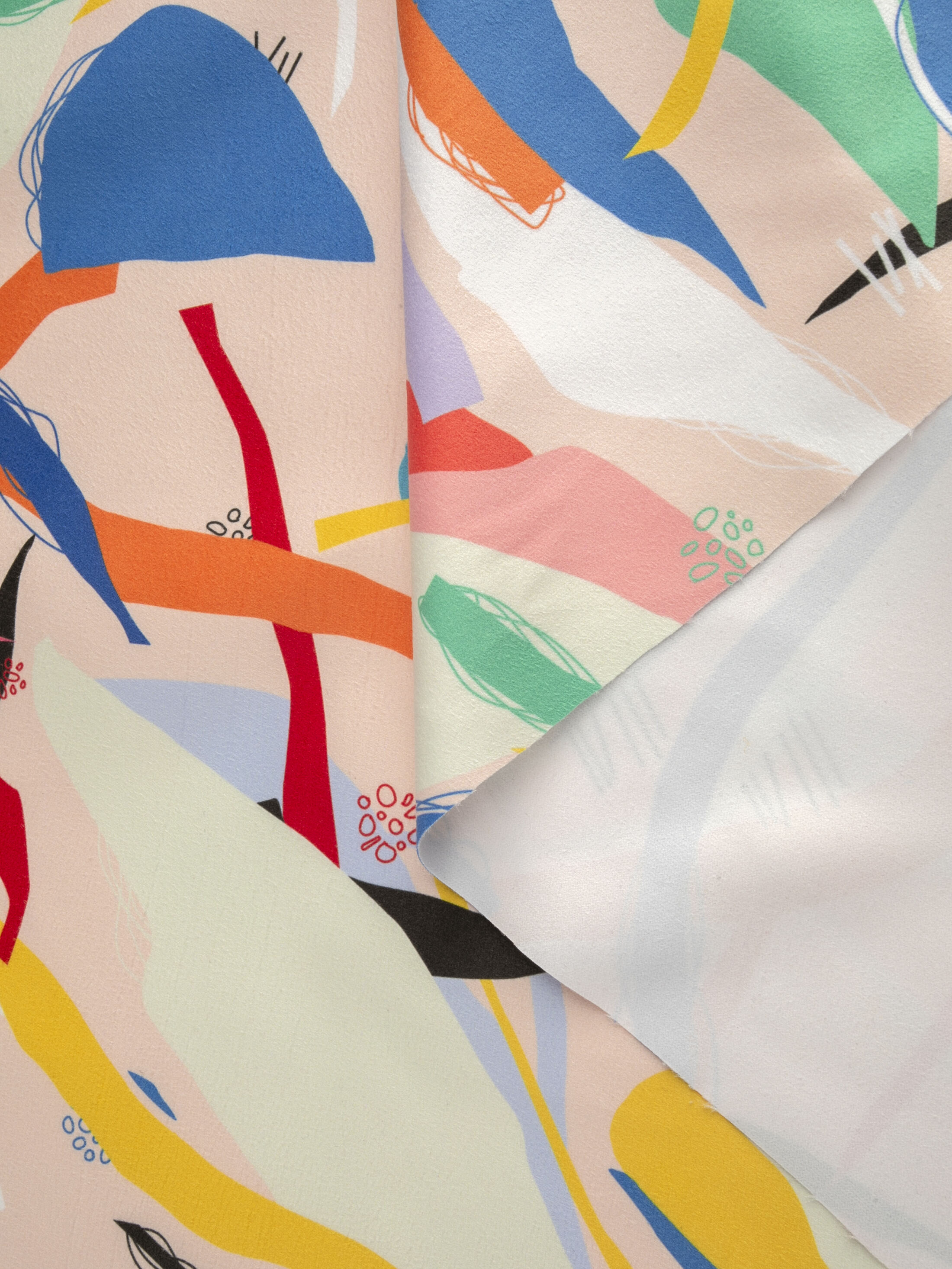 - Klippt på kanten. Vi klipper snyggt på kanten av ditt tryck. Vänligen observera att när vi klipper så klipper vi emot trådriktningen. Detta är standard när det kommer till att klippa textil. Detta innebär att med en del textiler som till exempel Georgette och Mulmul kommer att fransa eftersom de är en aningen vågiga. Detta är oundvikligt eftersom klippet följer trådriktningen.